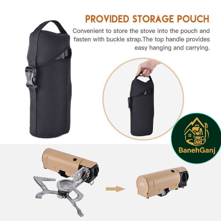 این اجاق گاز دارای یک کیف حمل پارچهای است که میتوانید به راحتی آن را در سفرهای خود حمل کنید. طراحی تاشو و کمحجم اجاق بهطوری است که به راحتی در هر نوع کولهپشتی یا چمدان جا میشود و شما میتوانید به راحتی آن را در هر سفر یا فعالیت فضای باز همراه خود داشته باشید.
