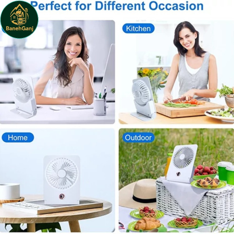 این پنکه قابل استفاده بهصورت رومیزی یا دیواری است، بنابراین در محیطهای مختلف مانند اتاق خواب، آشپزخانه، میز کار، ماشین، کمپینگ، مسافرت یا حتی در سالنهای زیبایی و فروشگاهها قابل استفاده است. بهدلیل طراحی بیسیم و شارژی، محدود به موقعیت پریز برق نیستید و میتوانید از آن در هر جایی بهره ببرید.