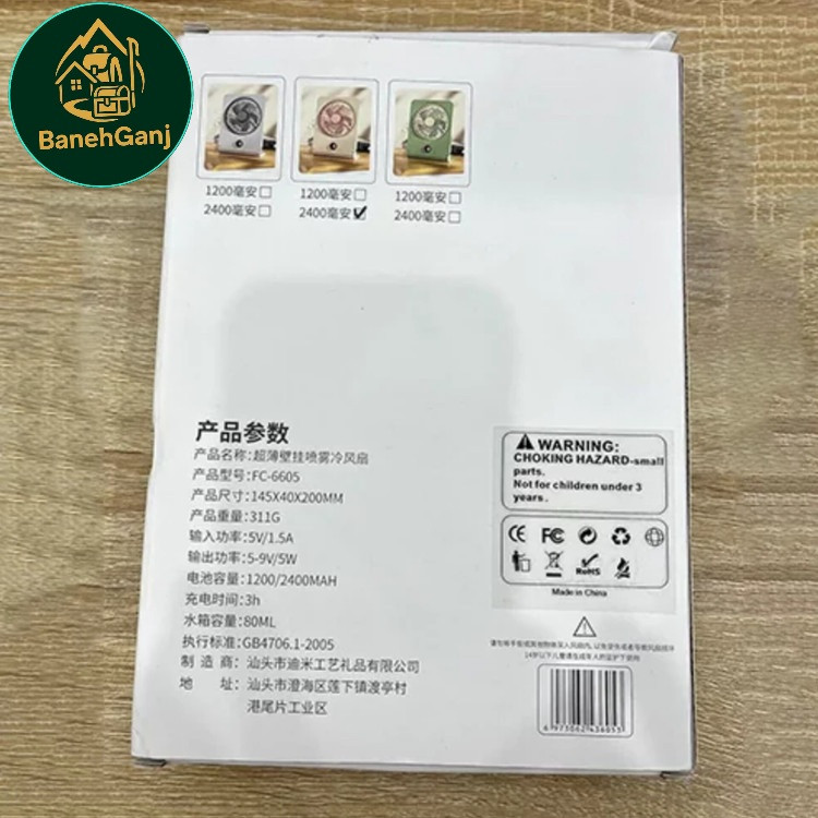 پنکه شارژی رومیزی و دیواری اسپری کننده آب مدل FC-6605