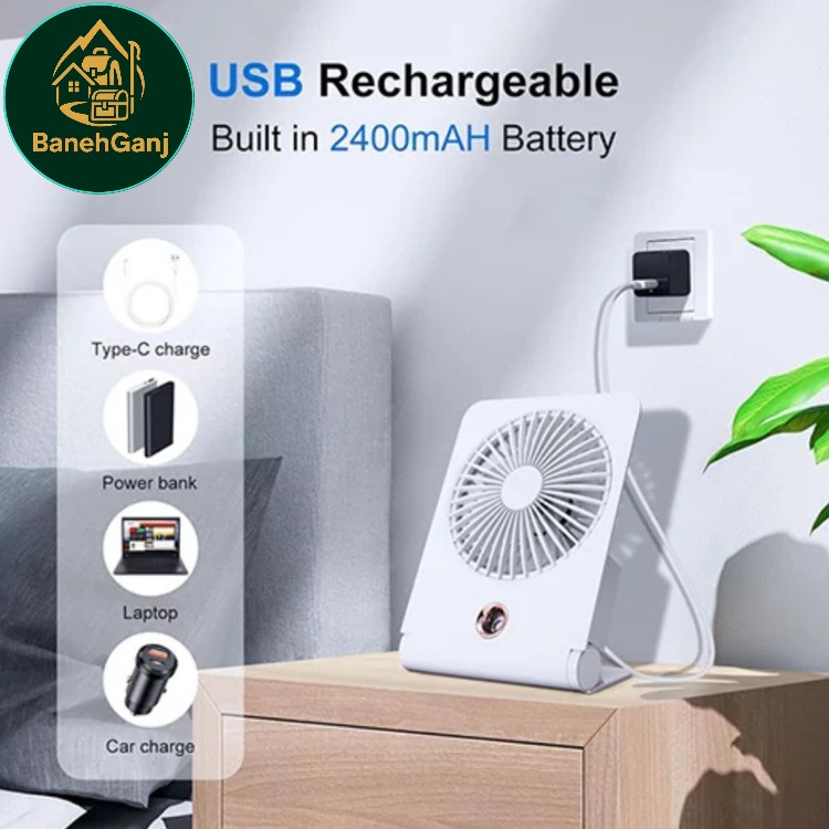 پنکه شارژی رومیزی و دیواری اسپری کننده آب مدل FC-6605