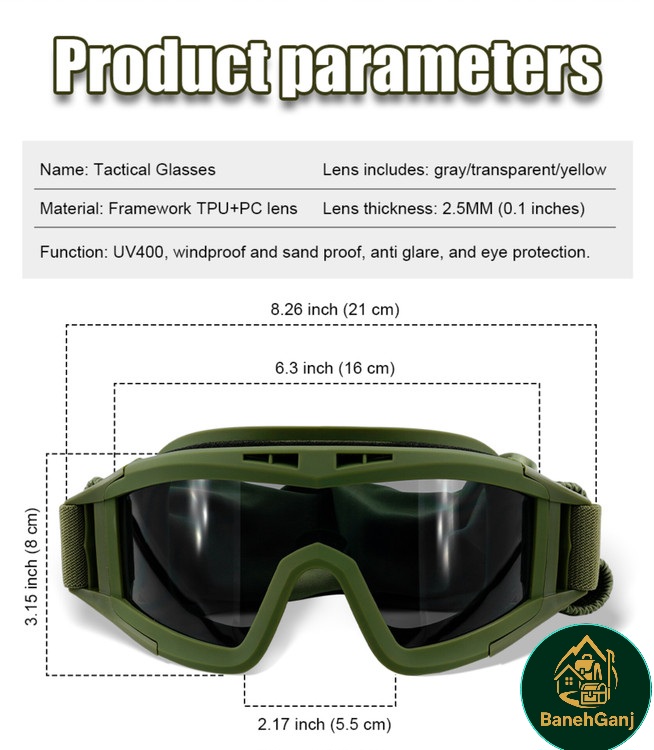 قابلیتها: قابلیت نصب لنز طبی ، ضد تعریق ، ضد گرد و غبار ، ضد خستگی چشم و ضد ضربه و خراش