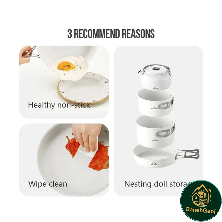 ست قابلمه سفید نیچرهایک مدل CNK2450CF013 | پخت و پز حرفهای در سفر و کمپینگ