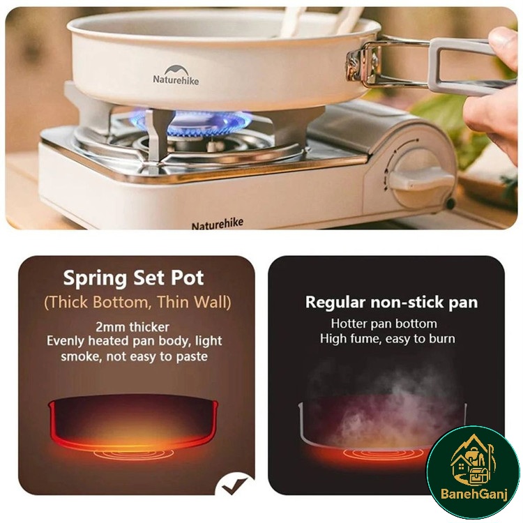 ستهای قابلمه و ظروف پختوپز نیچرهایک با طراحی استاندارد، پخت یکنواخت و آسان را حتی در شرایط خارج از منزل تضمین میکنند.
