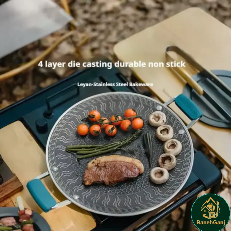 ماهیتابه استیل ضدزنگ (لویان) نیچرهایک مدل CNK2550CF011، ساختهشده از استیل ضدزنگ 316، سطح لانهزنبوری ضدچسب، دسته چوبی مقاوم، طراحی تاشو قابل حمل، مناسب برای پخت در سفر و کمپینگ.