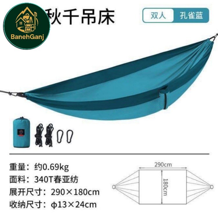 این ننو دارای ابعاد ۱۸۰ * ۲۹۰ سانتیمتر است که فضای کافی برای دو نفر را فراهم میکند. ابعاد بزرگ ننو باعث میشود که شما در داخل آن احساس راحتی داشته باشید و فضای کافی برای دراز کشیدن یا استراحت کردن وجود داشته باشد. این ننو میتواند به راحتی شما را از انواع شرایط محیطی مانند دمای بالا یا پایین، باد، یا حتی بارش باران محافظت کند.