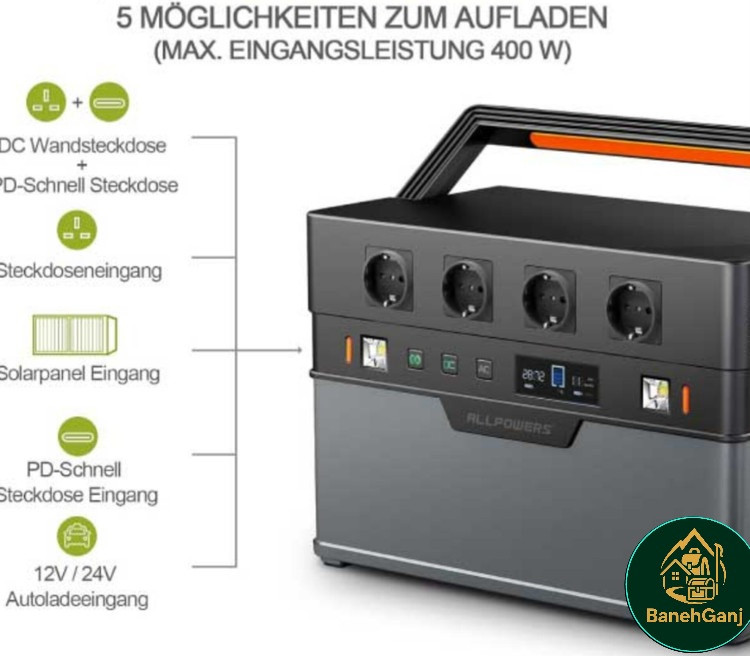 پاور استیشن ALLPOWERS مدل S1500 با ظرفیت ۱۰۹۲ واتساعت و توان خروجی ۱۵۰۰ وات، برای تأمین برق در سفر، کمپ، محیطهای خارج از خانه و مواقع اضطراری طراحی شده است. این دستگاه مجهز به خروجیهای متنوع AC، USB-A، USB-C و پورت خودرو، امکان شارژ سریع، پشتیبانی از پنل خورشیدی تا ۳۰۰ وات و کنترل از راه دور از طریق اپلیکیشن موبایل است.