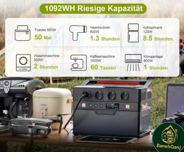 با ظرفیت ۱۰۹۲ واتساعت و توان خروجی پیوسته ۱۵۰۰ وات، این دستگاه قادر است انواع وسایل الکترونیکی از لپتاپ و تلفن همراه تا ابزارهای برقی کوچک را بهراحتی روشن کند و انرژی لازم را تأمین نماید.