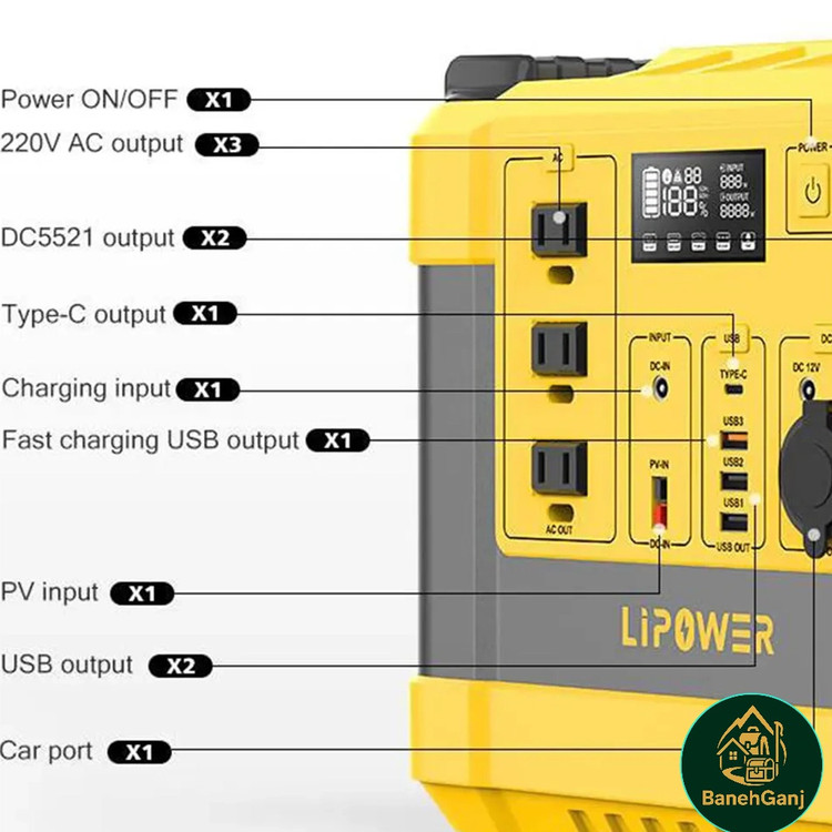 پاور استیشن 1000 وات قابل حمل LIPOWER مدل G1000L-S با توان خروجی مداوم 1000 وات و ظرفیت بالای 1008 واتساعت، یک منبع انرژی قدرتمند و قابل اطمینان برای استفاده در سفر، کمپینگ، کارگاه سیار یا شرایط اضطراری است. این دستگاه با بهرهگیری از باتری پیشرفته LiFePO4، عمر طولانی، ایمنی بالا و عملکرد پایداری ارائه میدهد.