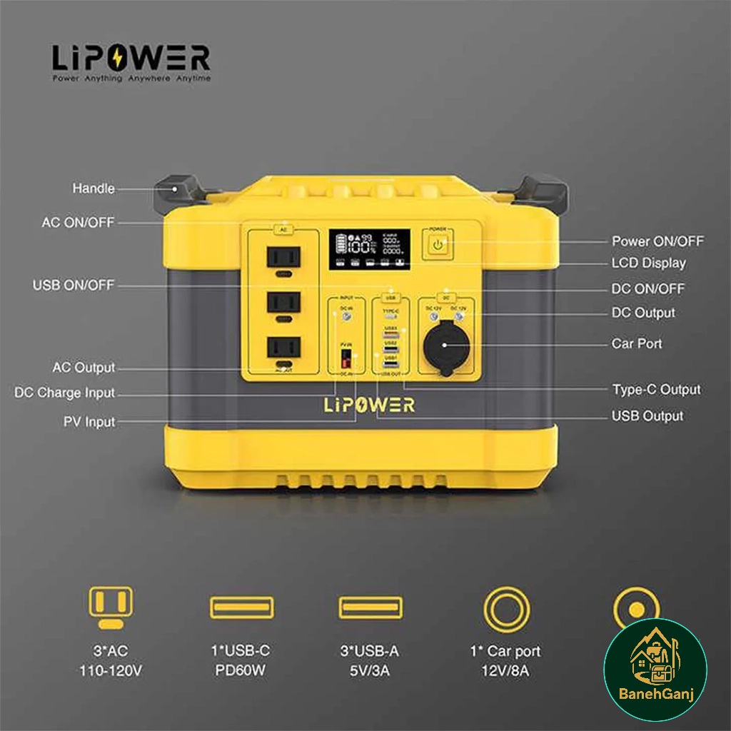 پاور استیشن 1000 وات قابل حمل LIPOWER مدل G1000L-S با توان خروجی مداوم 1000 وات و ظرفیت بالای 1008 واتساعت، یک منبع انرژی قدرتمند و قابل اطمینان برای استفاده در سفر، کمپینگ، کارگاه سیار یا شرایط اضطراری است. این دستگاه با بهرهگیری از باتری پیشرفته LiFePO4، عمر طولانی، ایمنی بالا و عملکرد پایداری ارائه میدهد.