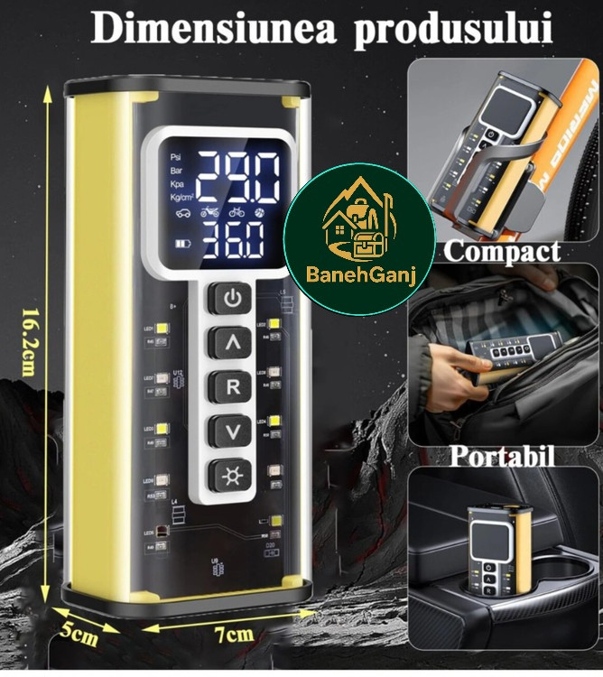 کمپرسور باد قابل حمل BYONDSELF® یک ابزار حرفهای و چندمنظوره برای باد کردن لاستیک خودرو، دوچرخه، موتورسیکلت، توپ و وسایل بادی است.