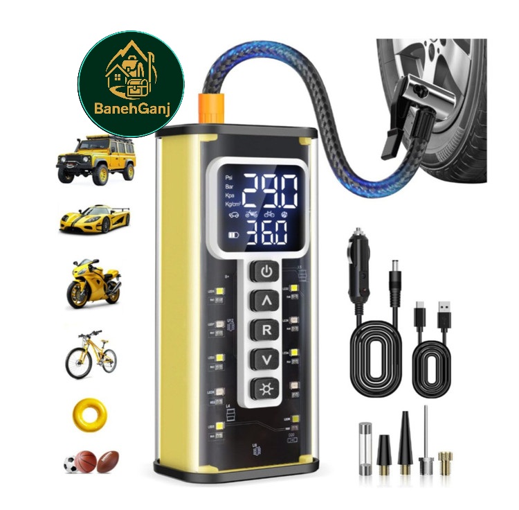 کمپرسور باد قابل حمل BYONDSELF® یک ابزار حرفهای و چندمنظوره برای باد کردن لاستیک خودرو، دوچرخه، موتورسیکلت، توپ و وسایل بادی است.
