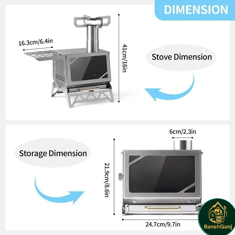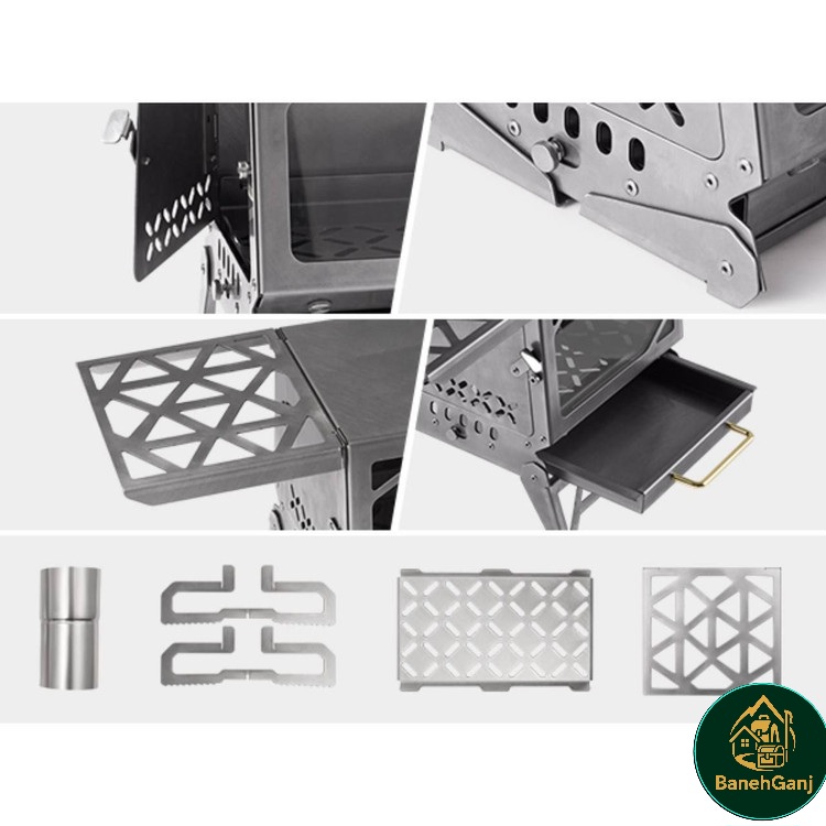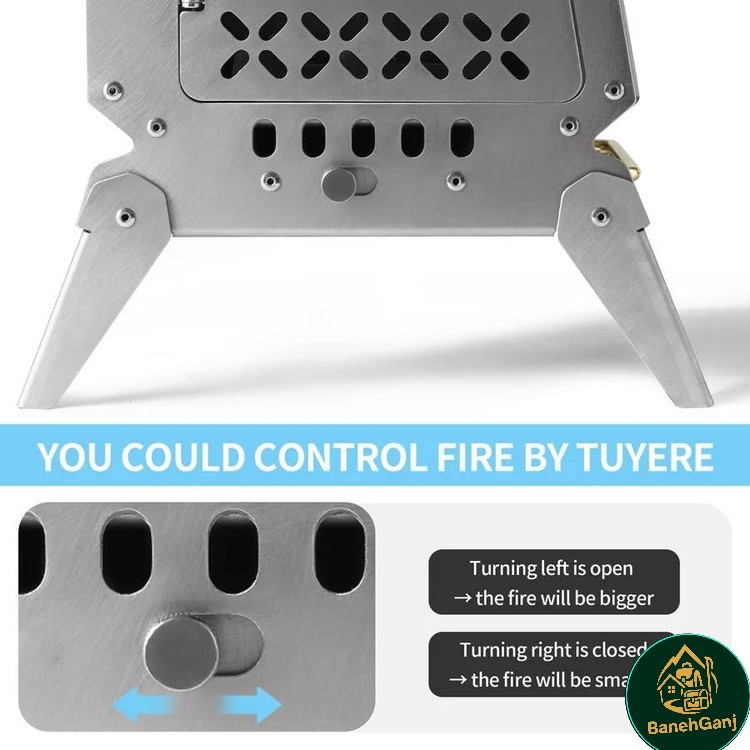 دودکش و دریچههای تهویه قابل تنظیم، کنترل بهتر حرارت و احتراق کامل سوخت را ممکن میسازد. این محصول برای کمپینگ، پخت و پز گروهی و طبیعتگردی بسیار مناسب است.
