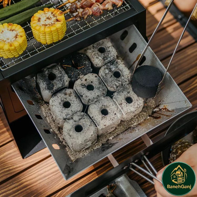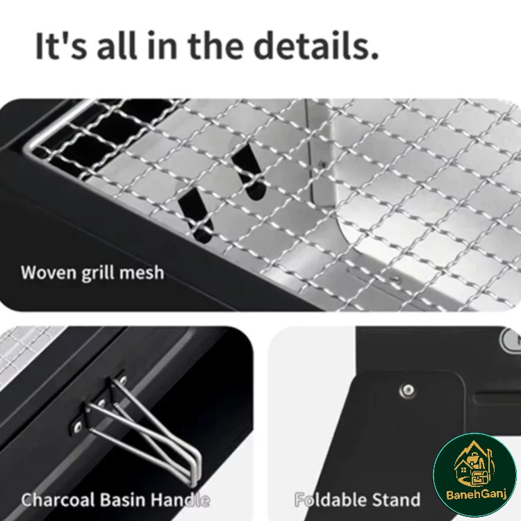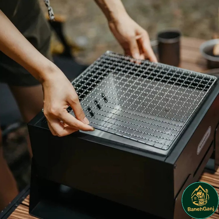 اقلام همراه: شبکه فلزی، محفظه ذغال، پایههای تاشو