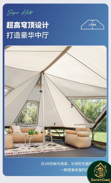 با وجود ۶ نقطه تهویه در این چادر، جریان هوای مناسب به داخل برقرار شده و از تجمع رطوبت و گرمای بیش از حد جلوگیری میکند. این سیستم تهویه موثر باعث میشود تا هوای داخل چادر همیشه تازه و مطبوع باقی بماند.
