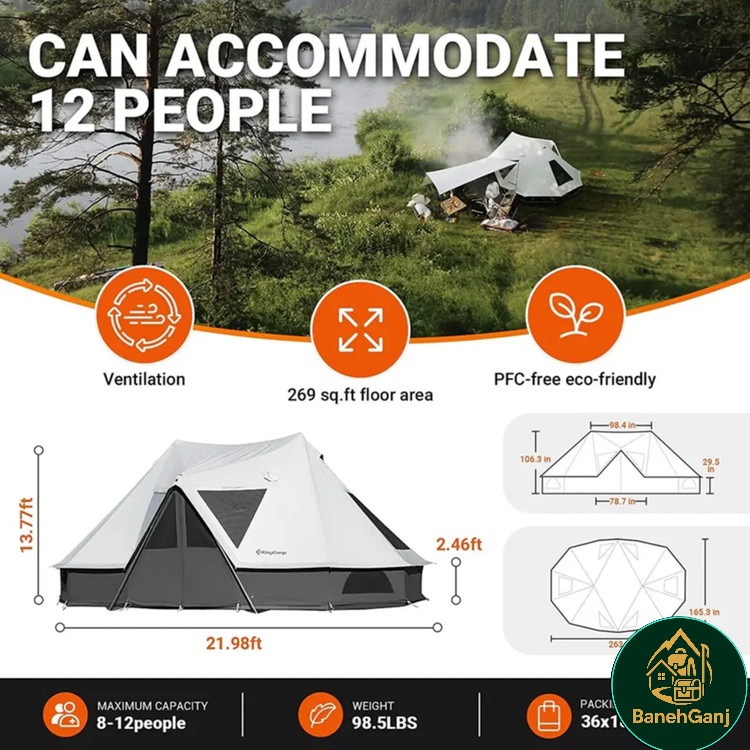 این چادر گلمپینگ به دلیل ابعاد بسیار بزرگ ۴۱۹.۹×۲۷۰×۶۷۰ سانتیمتر، فضای وسیعی را برای اقامت گروهی و خانوادگی فراهم میکند. با ظرفیت تا ۱۲ نفر، امکان استفاده همزمان برای تعداد زیادی از افراد مهیا است.