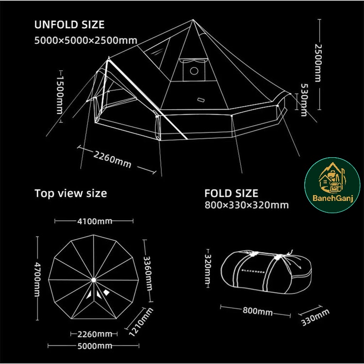 چادر کمپی گروهی 5*5 متری مدل سرخپوستی مارک black deer ( ۲۰ نفره ) مدل BD12111123