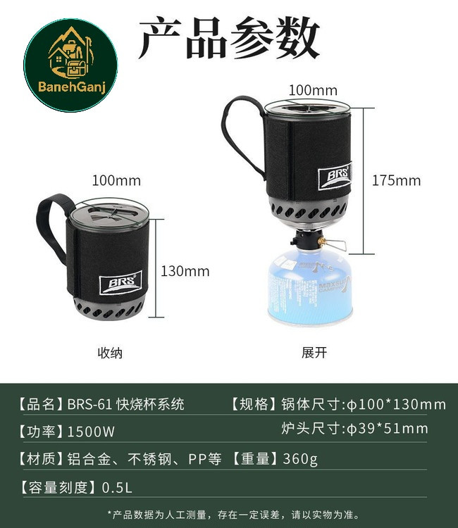 جت بویل BRS-61 با استفاده از آلیاژ آلومینیوم و فولاد ضد زنگ ساخته شده است که مقاومت بالایی در برابر شرایط سخت طبیعت دارد. این مواد به دستگاه کمک میکنند تا عمر طولانیتری داشته باشد و در برابر خوردگی و آسیبهای ناشی از استفاده مداوم در طبیعت، مقاوم باشد. همچنین قابلمه این دستگاه با قطر 100 میلیمتر و ارتفاع 130 میلیمتر، ظرفیت 500 میلیلیتر را ارائه میدهد که مناسب برای پخت غذا یا جوشاندن آب برای 1 تا 2 نفر است.