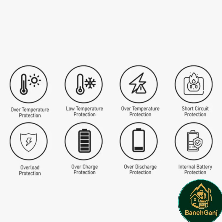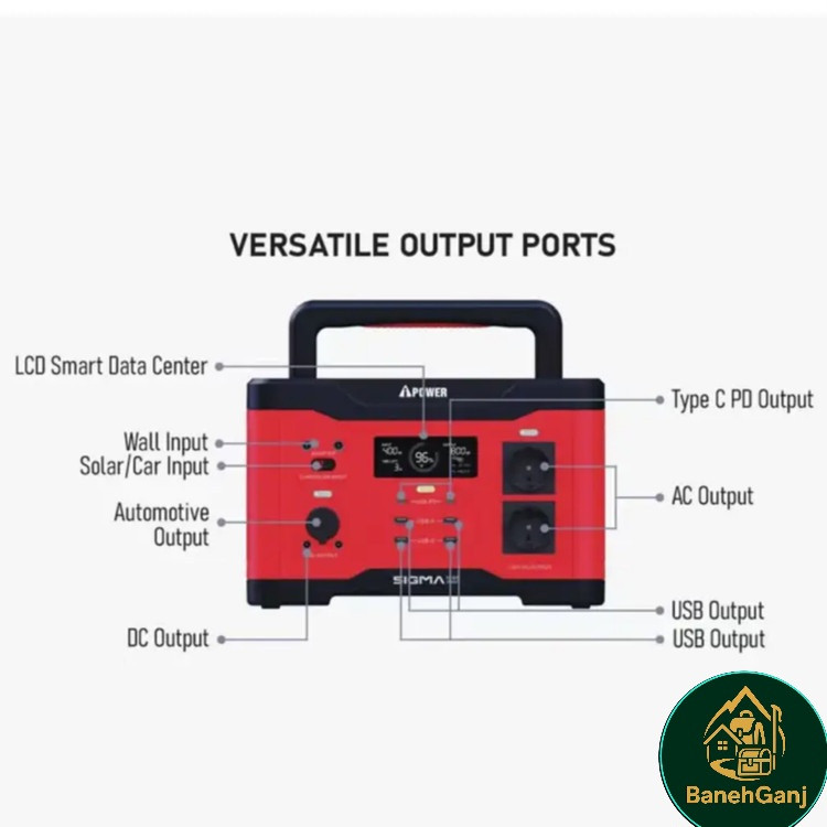 قابلیت شارژ با پنل خورشیدی با برق شهری با ورودی ۲۰۰ وات ، قابلیت شارژ از طریق خودرو با ورودی ۱۰۰ وات