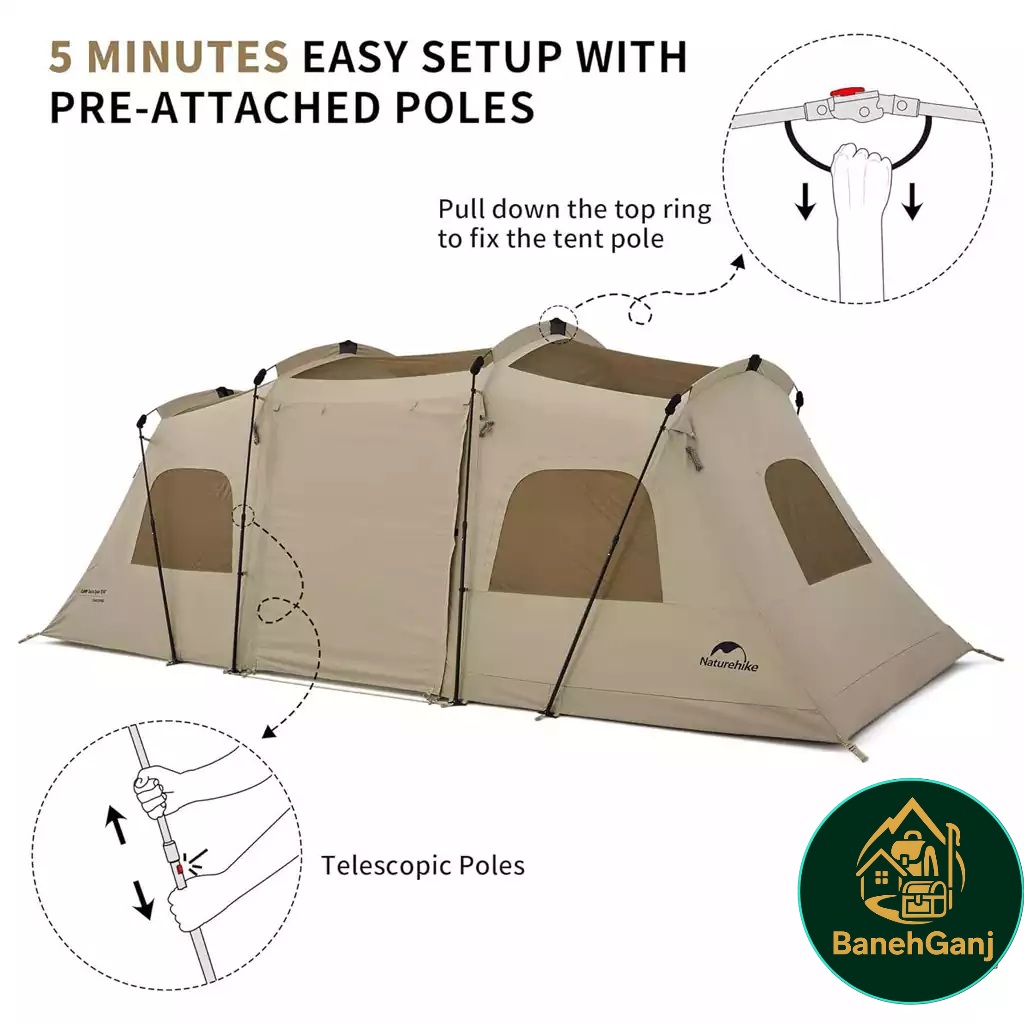 چادر 6 نفره نیچرهایک Cloud vessel مدل CNH22ZP015 و ابعاد مناسب برای کمپ گروهی