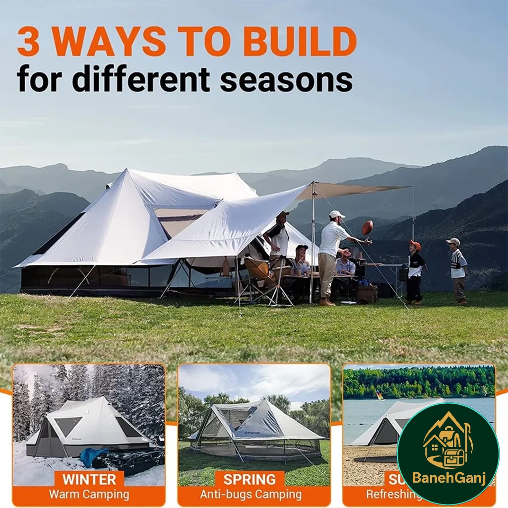 برای کسانی که به دنبال تجربهای متفاوت و لوکس از کمپینگ هستند، چادر کمپینگ کینگکمپ مدل Khan کد KT2401_GREY فرصتی برای طبیعتگردی فراهم میکند. این چادر بزرگ و جادار با طراحی خاص خود، فضای کافی برای ۱۲ نفر فراهم میکند. همچنین با متریال مقاوم، تهویه مطلوب و امکانات کاربردی، اقامت در دل طبیعت را به تجربهای شبیه به اقامت در یک کلبه مجهز تبدیل کرده است. در جنگل، کوهستان یا بیابان، این چادر همراهی قابلاعتماد برای سفرهای گروهی و گلمپینگهای چهارفصل خواهد بود.