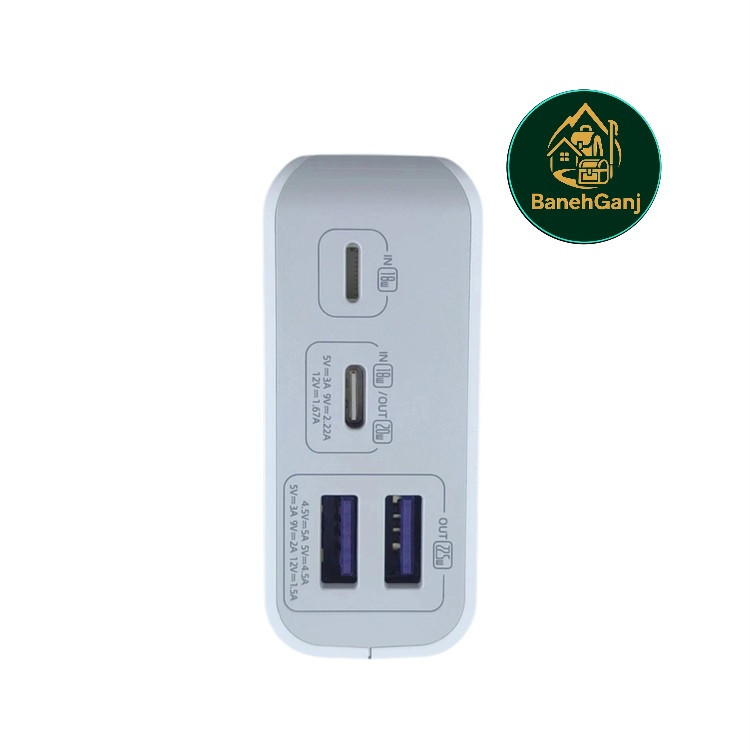دارای پورت ورودی Lightning و Type-C / دارای پورت خروجی Type-C و USB.3 / توان خروجی تا 22.5 وات / دارای چراغ LED نمایشگر میزان شارژ