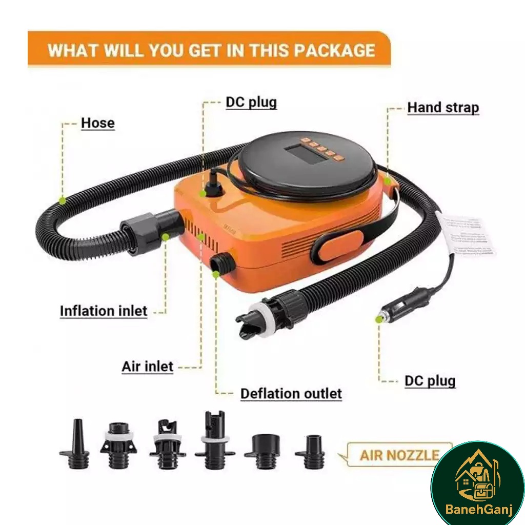 یک بخش جذاب و کاربردی در این مدل، صفحه نمایش دیجیتال LED است. این نمایشگر، میزان فشار فعلی، مقدار تنظیمشده و وضعیت عملکرد پمپ را بهصورت شفاف نشان میدهد. چنین قابلیتی موجب میشود کار با دستگاه نهتنها آسان بلکه دقیقتر و حرفهایتر باشد. افرادی که در سفر یا فعالیتهای ورزشی از وسایل خاصی مانند تخته پارویی (SUP)، قایق یا توپهای حرفهای استفاده میکنند، میتوانند بلافاصله مقدار فشار لازم را ببینند و تنظیم کنند.