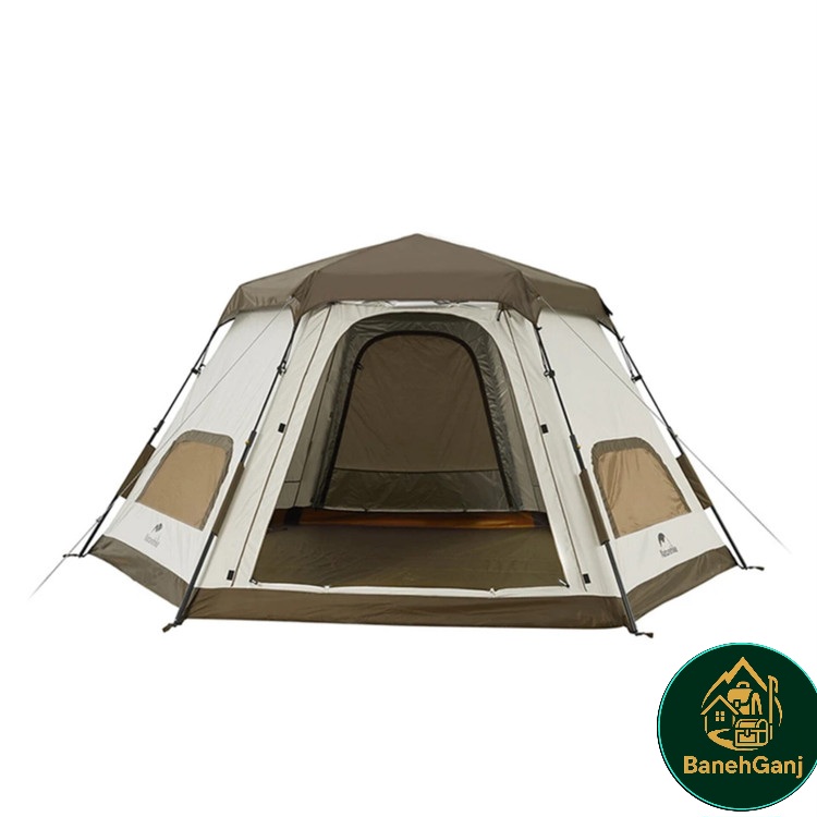 چادر اتوماتیک نیچرهایک CNH22ZP007 برای شش نفر طراحی شده و ابعاد باز ۳۵۶×۳۱۰×۱۶۰ سانتیمتر، فضای کافی برای استراحت و نگهداری وسایل فراهم میکند. ساختار جادار آن امکان حرکت راحت داخل چادر را بدون احساس تنگی فراهم میکند و برای خانوادهها یا گروههای دوستانه مناسب است. طراحی مدرن و ارتفاع استاندارد، استفاده طولانیمدت را راحت میسازد.