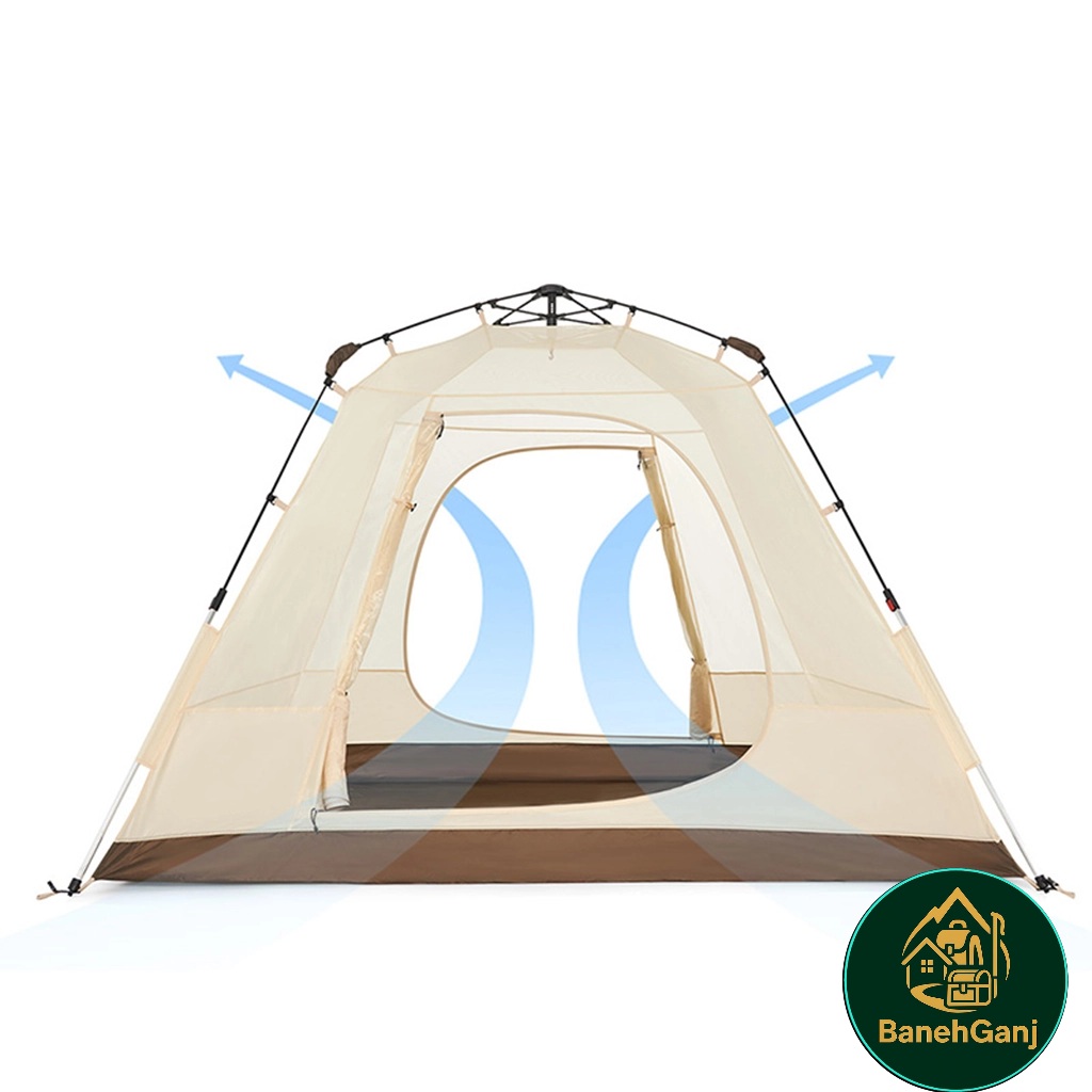 تیرکهای آلومینیوم و آهن همراه با پارچه پوشش پلیاستر ۲۱۰T و کف پلیاستر ۱۵۰D مقاومت و دوام بالایی در برابر فشار و شرایط محیطی ارائه میدهند. این ساختار توان تحمل وزش باد و استفاده طولانیمدت در سفرهای طبیعتگردی را دارد. ترکیب مواد سبک و مقاوم، حمل و نصب چادر را ساده و پایدار میکند.