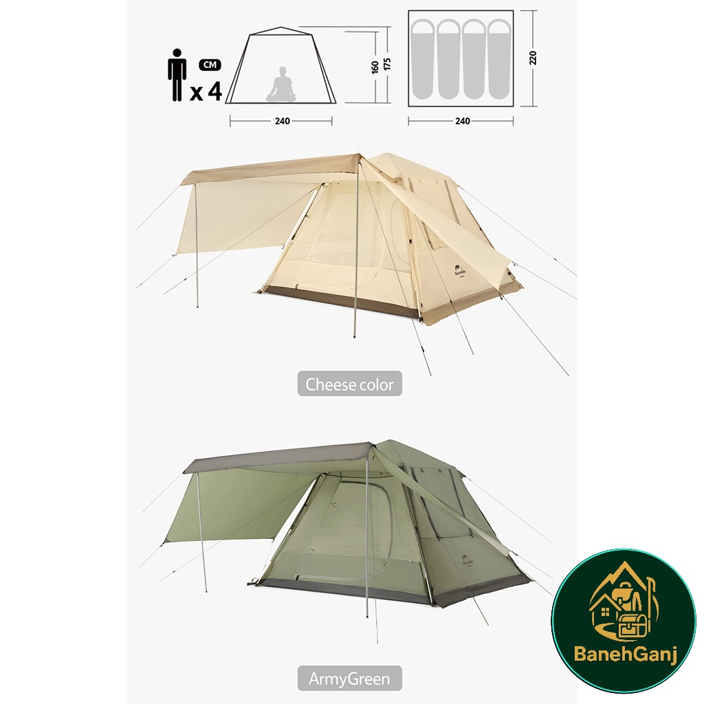 چادر نیچرهایک NH21ZP010 فضای کافی برای چهار نفر فراهم میکند و ابعاد ۲۲۰ × ۲۴۰ × ۱۶۰ سانتیمتر امکان حرکت و استراحت راحت داخل چادر را میدهد. ارتفاع مناسب فضای نشستن و فعالیت کوتاه را آسان میکند و طراحی بهینه موجب استفاده حداکثری از فضای داخلی میشود. وجود فضای مناسب برای وسایل شخصی، تجربهای منظم و راحت در سفرهای گروهی ایجاد میکند.