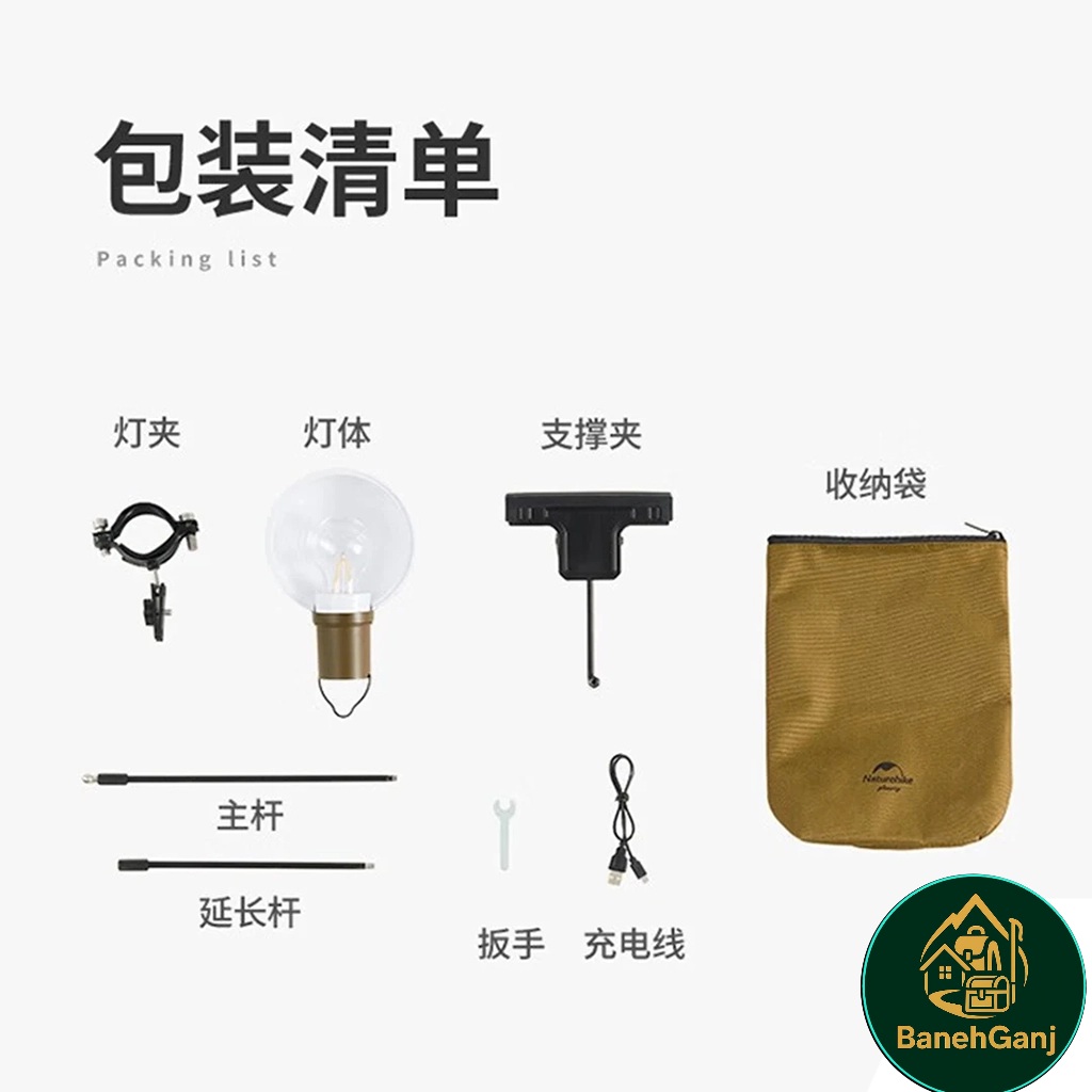 روشنایی و باتری چراغ کمپینگ گیرهدار نیچرهایک مدل NH22ZM002